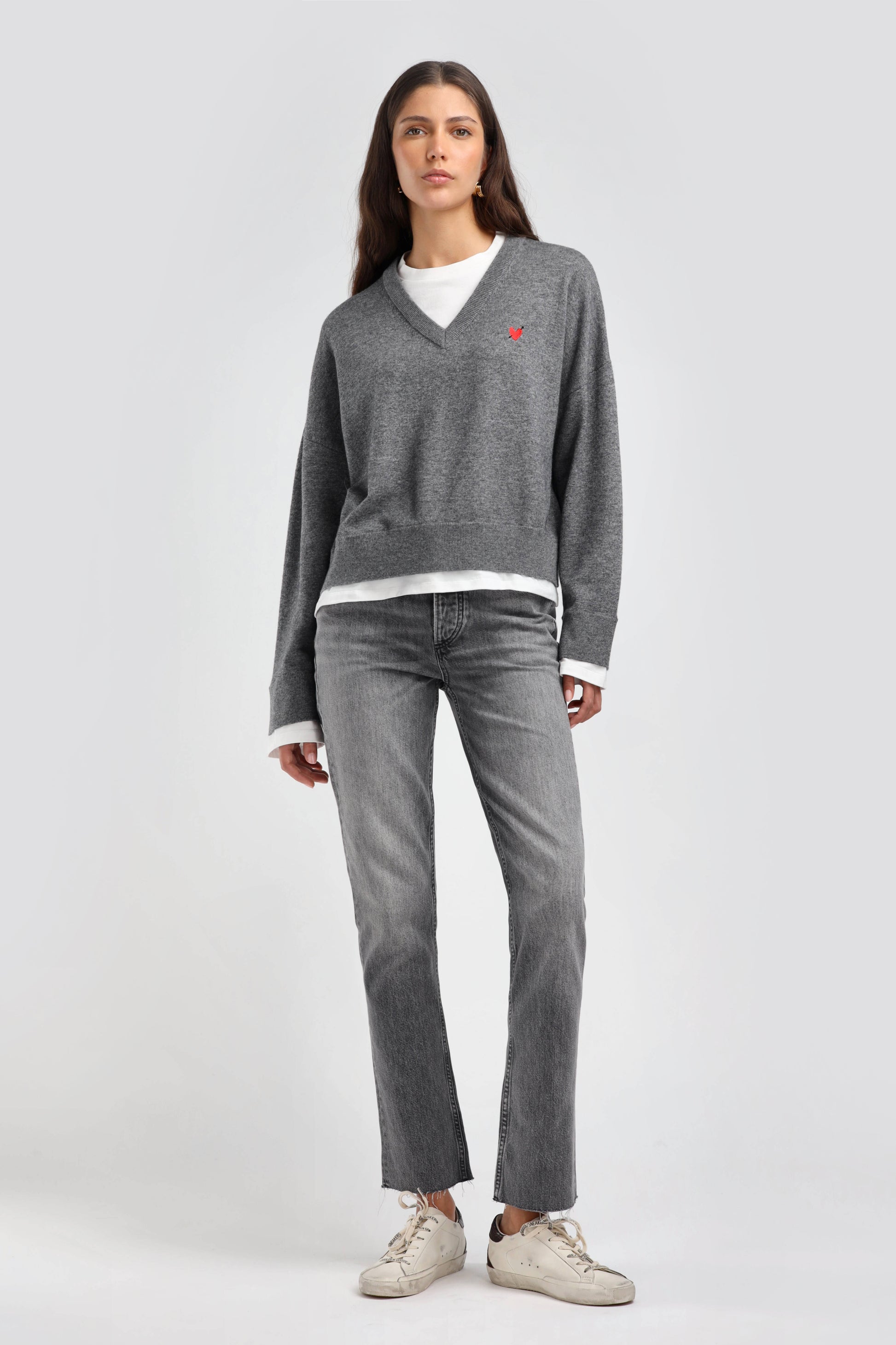 - Gesticktes Herz-Logo auf der Brust